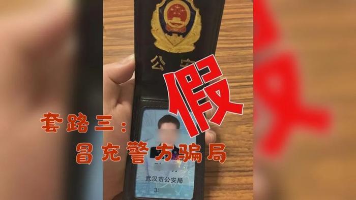 套路三:“冒充警方”骗局。骗子冒用公检法等机关的名义,恐吓受害人涉嫌犯罪,并出示所谓的警官证、逮捕令、传票等进一步迷惑和吓唬受害人。然后,诈骗分子会打着帮助受害人洗脱罪名或者自证清白为幌子,要求受害人进行“屏幕共享”,将资金转入一个所谓的“安全账户”配合调查。