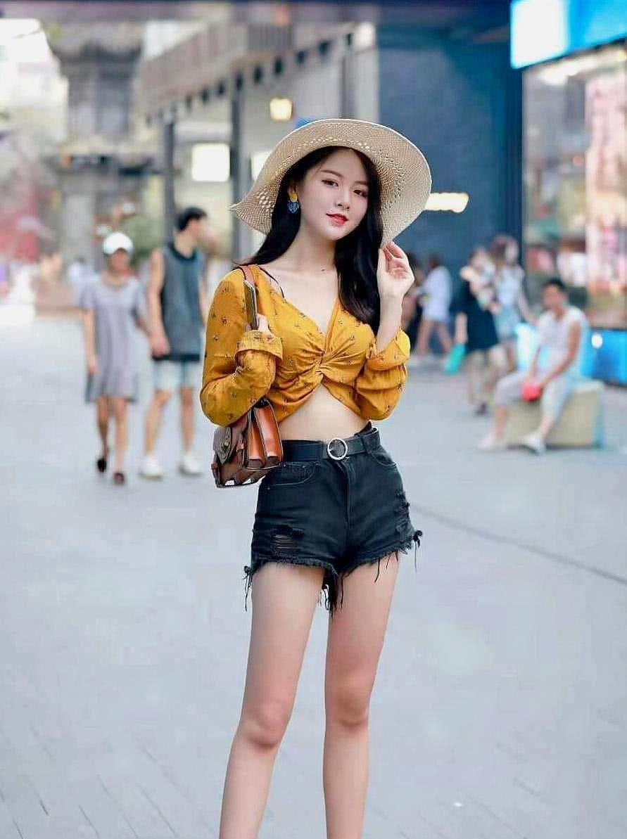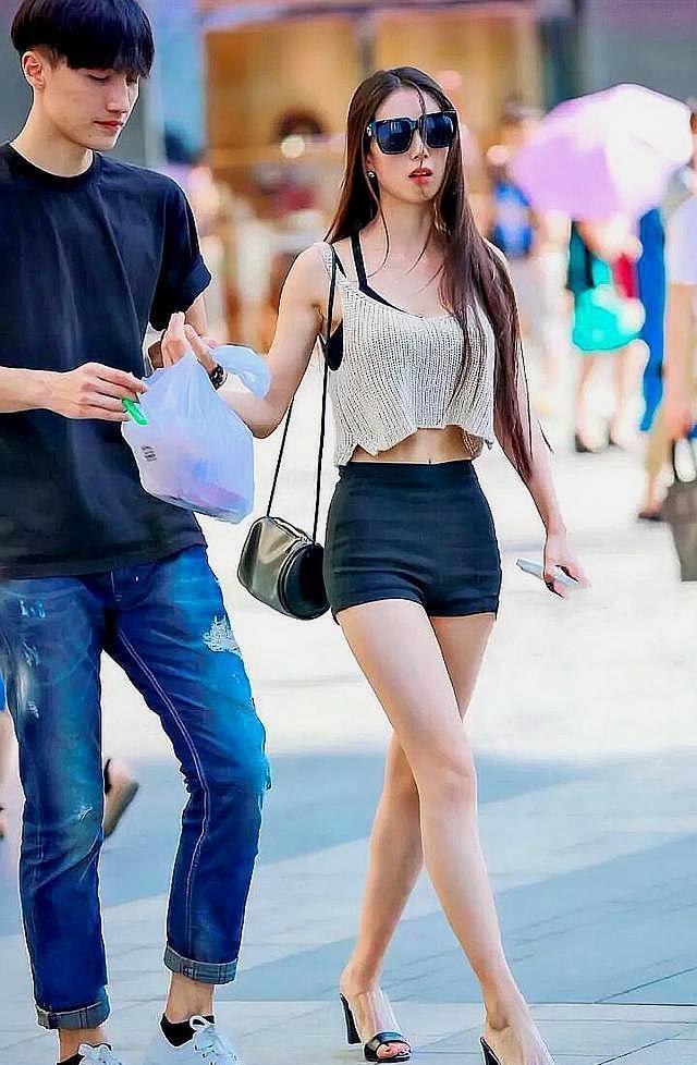 街拍:穿超短裤的美女,凸凹有致的身形,尽情展示纤细的腿部曲线