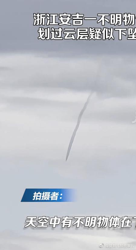 浙江不明飞行物冲破云层快速下坠