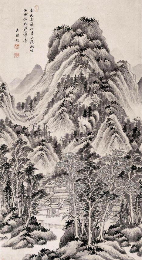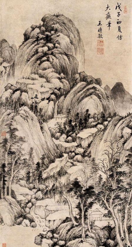 主张摹古,构图几乎雷同,但他在画坛地位极高,王时敏作品一组
