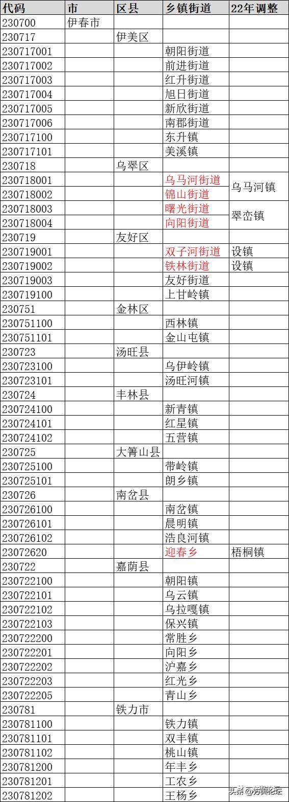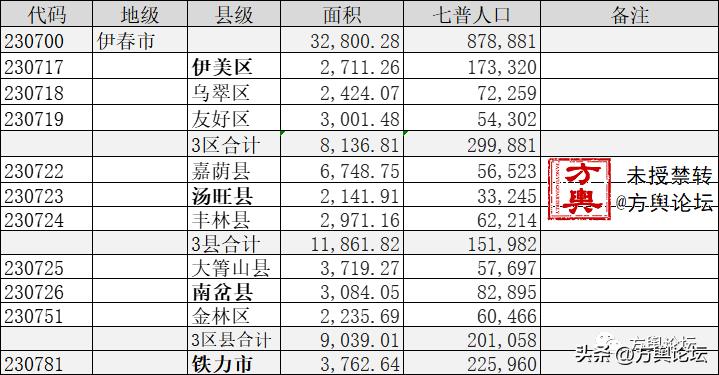 伊春市政区表(方舆论坛 无形编制)