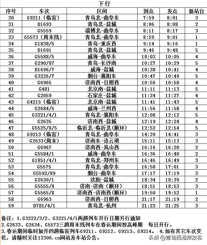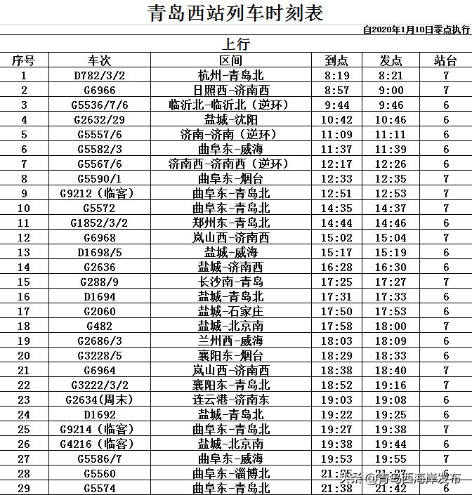 @青岛人 最新发布!青岛西站最新时刻表,注意查收