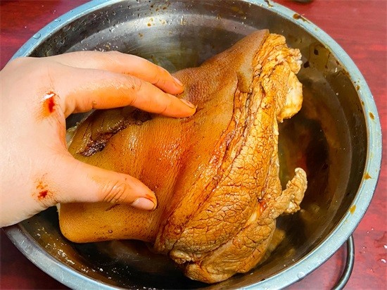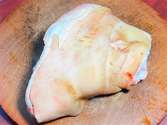 今天早上去超市花了40块钱,买了一个大大的猪肘子。买回来的肘子,我们先用火枪将猪毛给清理干净,把猪皮烧到金,黄金黄的就可以,接下来再用刀在猪皮表面上来回的刮一下。将上面残留的脏东西,还有猪毛给刮下来,然后再用温水冲洗干净。