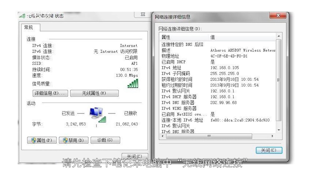 请先检查下笔记本电脑中“无线网络连接”或者“WLAN”中的IP地址,是否设置为了自动获得(动态IP),如果不是,请设置成自动。