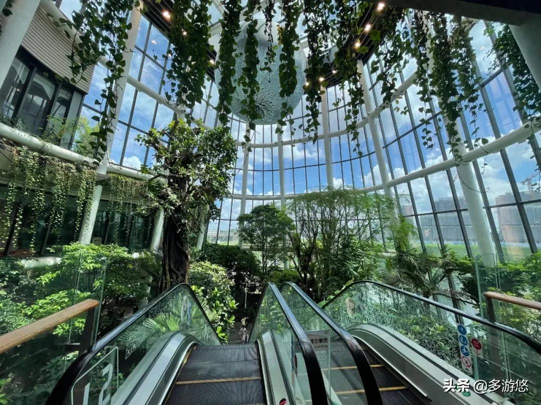 (2)由商铺围合起来的中心区域,顶端采用环形穹顶天窗,阳光透过天窗照亮了整条长廊、中庭花园,甚至可以照射到商场地下二层。中庭10米高的水景幕墙投射于水景上的光线将创造出独特夺目的绚丽效果,拍照好看,不容错过。