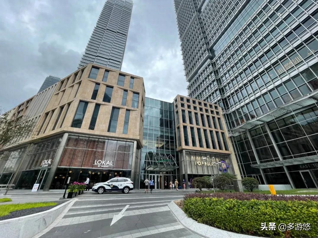 (2)东西两幢双子高楼,装修设计高端洋气,夜晚的灯光喷泉炫目,环境好。广场内餐饮百货、文化娱乐、教育培训等门类齐全。