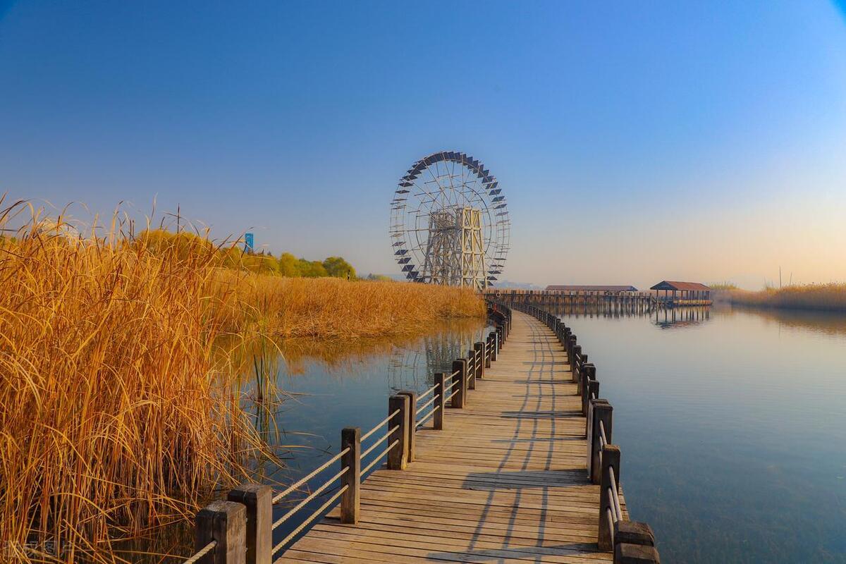 苏州太湖国家湿地公园,是一处天然湿地,秀丽湖湾,湿地面积很大,可以看到各种珍稀野生动物,沿途风景秀美,可以乘船游湖,微风吹拂,荡起一池涟漪,泛舟湖上,赏层林尽染的红衫美景。