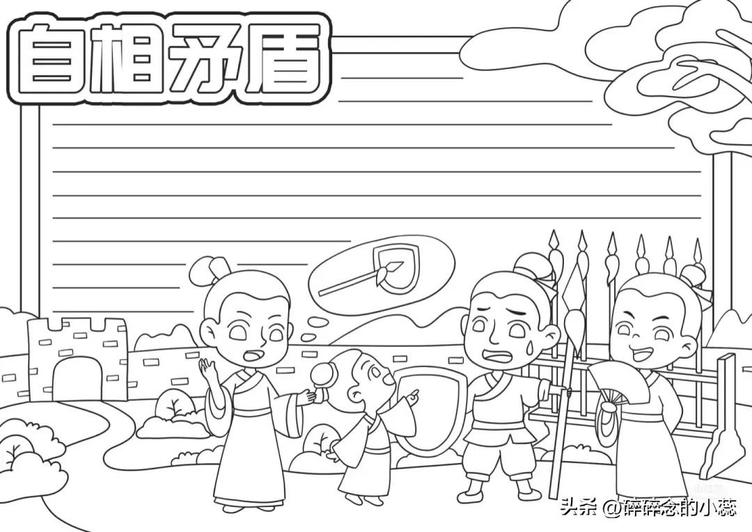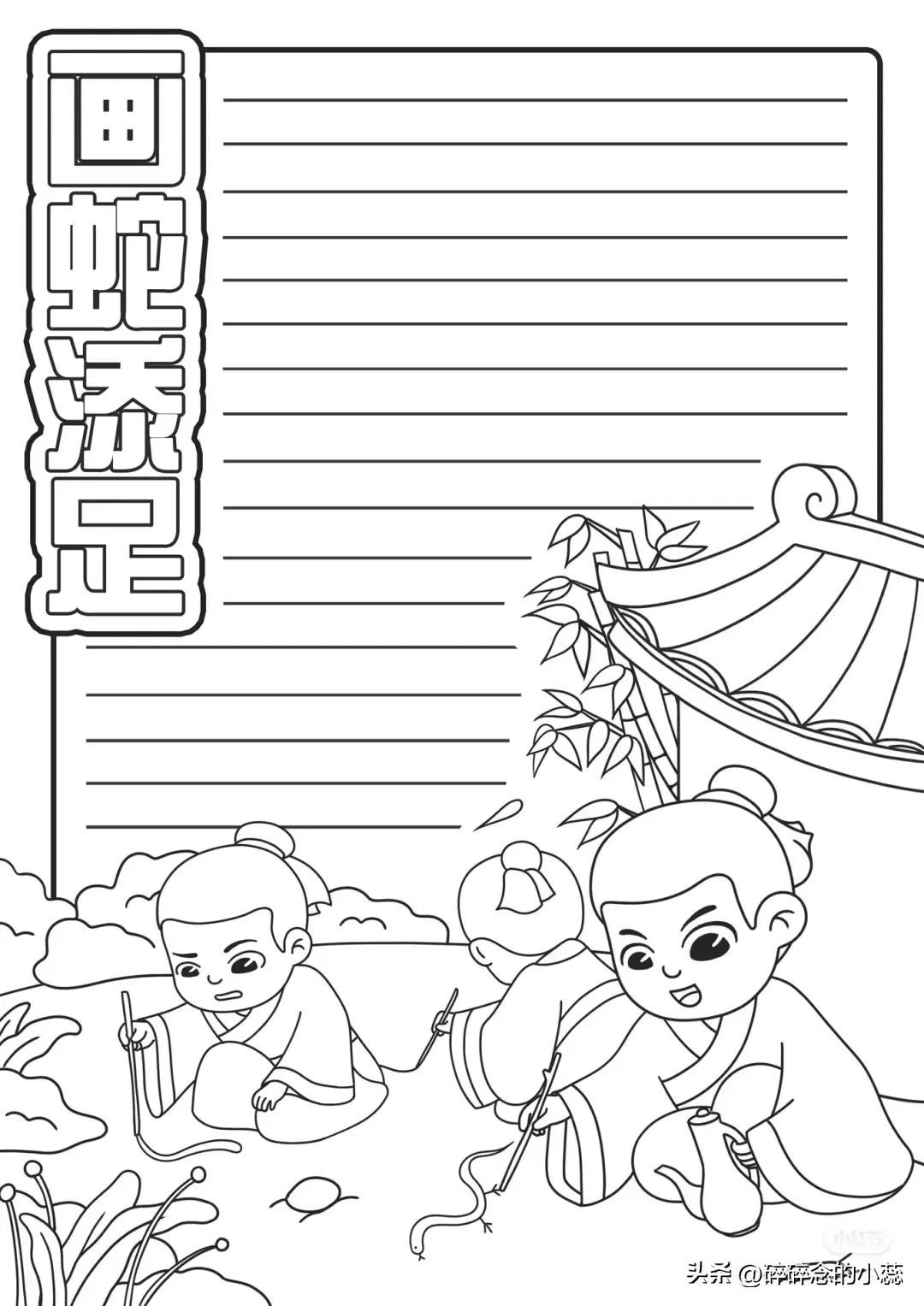 精选30张成语故事、寓言故事手抄报|附线稿,可打印