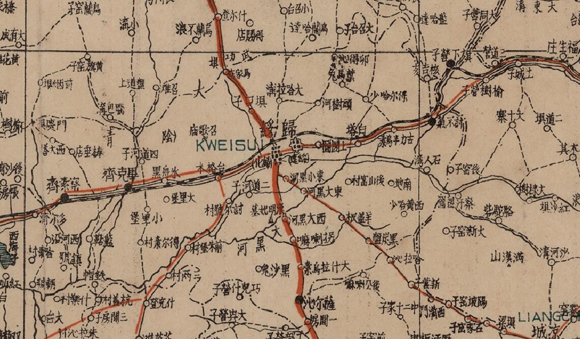 1937年内蒙古老地图,图名为《归绥》(呼和浩特)