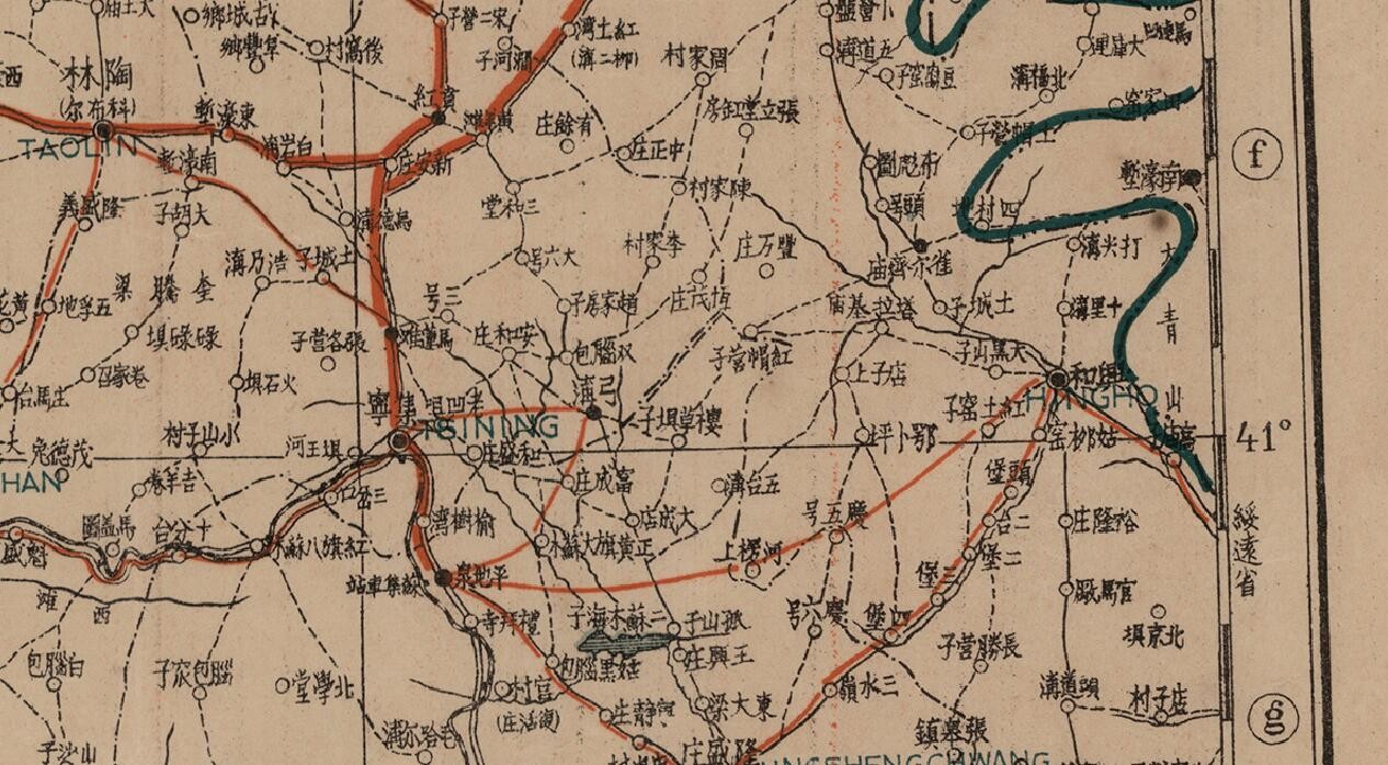 请看图中重要城市有丰镇、集宁、归绥(呼和浩特)、包头等。