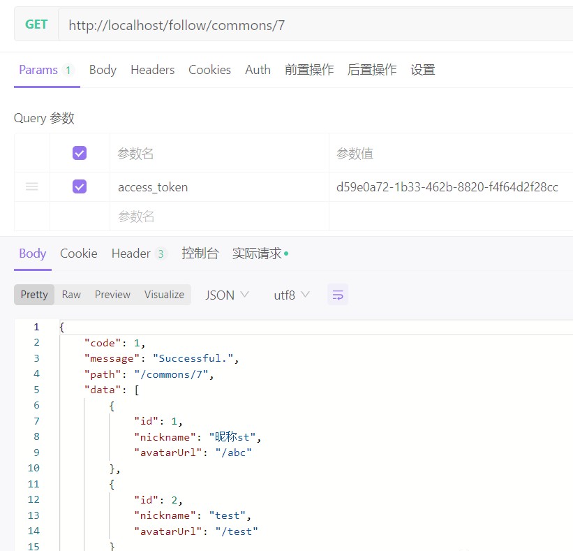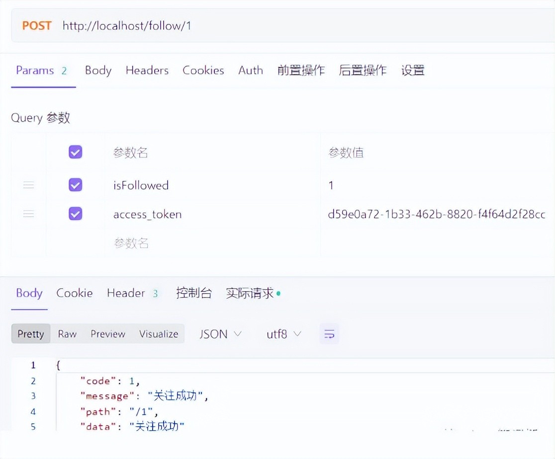 packagecom.zjq.seckill.controller;importcom.zjq.commons.model.domain.ResultInfo;importcom.zjq.seckill.service.FollowService;importorg.springframework.web.bind.annotation.*;importjavax.annotation.Resource;importjavax.servlet.http.HttpServletRequest;/***关注/取关控制层*@authorzjq*/@RestControllerpublicclassFollowController{@ResourceprivateFollowServicefollowService;@ResourceprivateHttpServletRequestrequest;/***关注/取关**@paramfollowUserId关注的用户ID*@paramisFollowed是否关注1=关注0=取消*@paramaccess_token登录用户token*@return*/@PostMapping("/{followUserId}")publicResultInfofollow(@PathVariableIntegerfollowUserId,@RequestParamintisFollowed,Stringaccess_token){ResultInforesultInfo=followService.follow(followUserId,isFollowed,access_token,request.getServletPath());returnresultInfo;}}