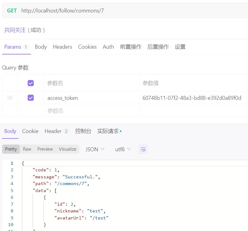 /** *共同关注列表 * *@paramuserId *@paramaccess_token *@return */ @GetMapping("commons/{userId}") publicResultInfofindCommonsFriends(@PathVariableIntegeruserId, Stringaccess_token){ returnfollowService.findCommonsFriends(userId,access_token,request.getServletPath()); }