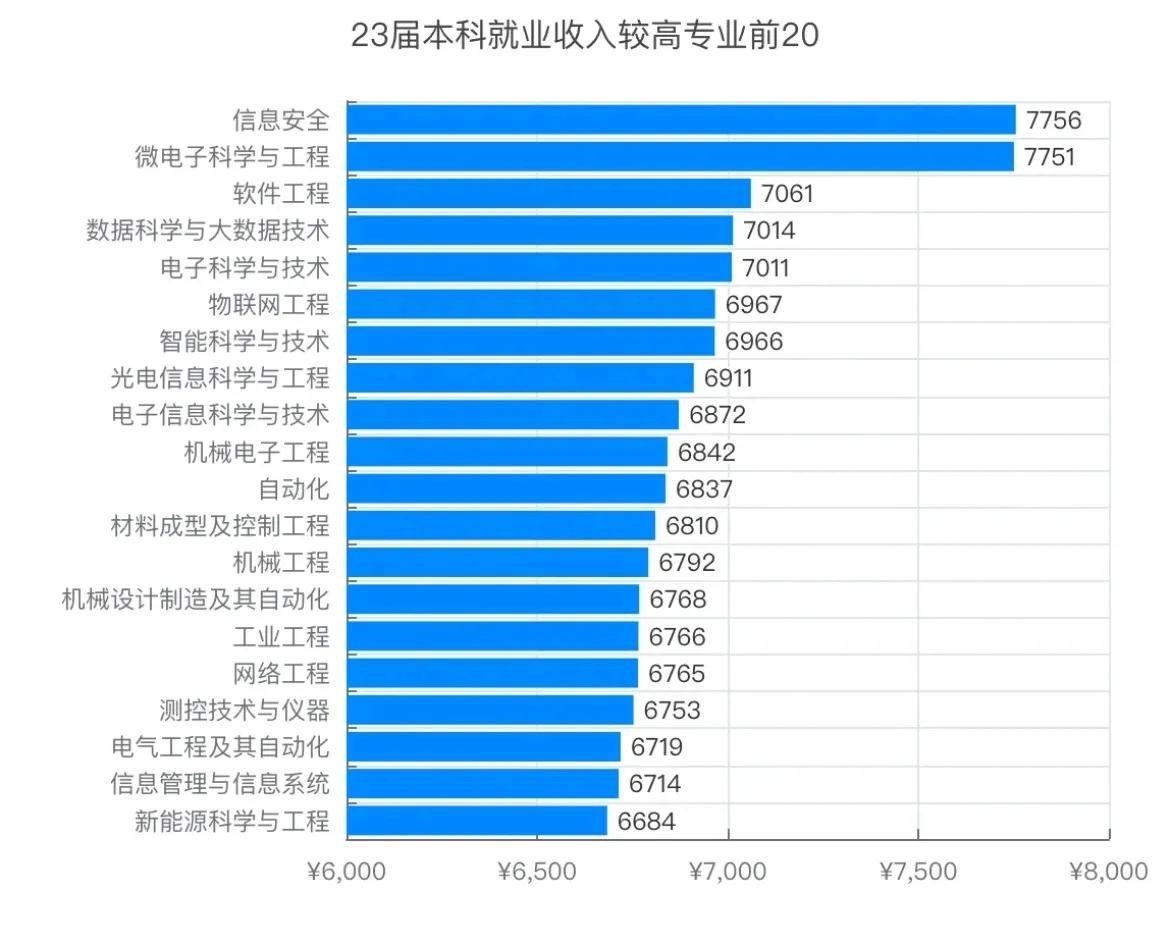 在工科类专业中,软件工程专业还是不错的。毕业生平均薪酬待遇一直位居前列。在23届本科就业收入较高专业前20名中,软件工程以平均月薪7061元,再次跻身第三名。是位数不多的平均月薪7000以上专业之一。