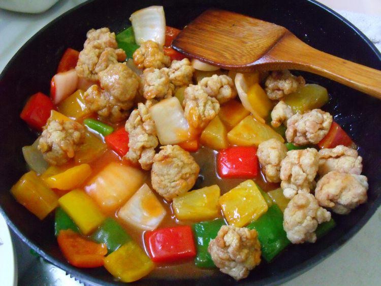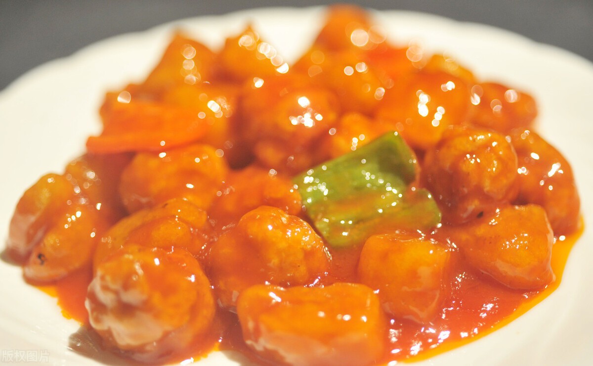 说起“糖醋咕噜肉”的来历,还有一段有趣的故事。相传,在清代末期,广东居住着大量的外国人,他们非常喜欢中国菜,尤其是糖醋排骨,但美中不足的是,每次食用时都得吐骨头,他们感到很不习惯。为了顺应食客的需求,聪明的广东厨师灵机一动,何不将糖醋排骨改进一下,做成一道没有骨头的糖醋菜呢?说干就干,他们用一些精瘦肉和淀粉制作成一个个大肉圆子,然后放入油锅中煎炸,至金黄酥脆时捞出,并淋上糖醋卤汁,其味酸甜可口,更受外宾的青睐。