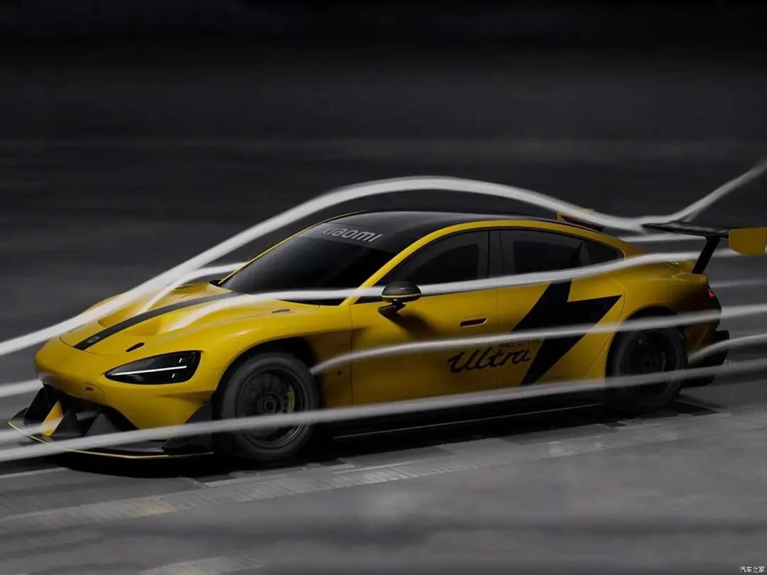 小米SU7 Ultra 原型车基于小米SU7打造,经过了赛道级的专业化改装,车头和车门下部都有宽大的扰流板,尾部夸张的后扰流板相当抢眼,后导流槽伸出车体之外。其采用“全碳”设计,车身覆盖件100%使用碳纤维材料,整车减重到1900kg,采用独特的闪电黄搭配闪电拉花。