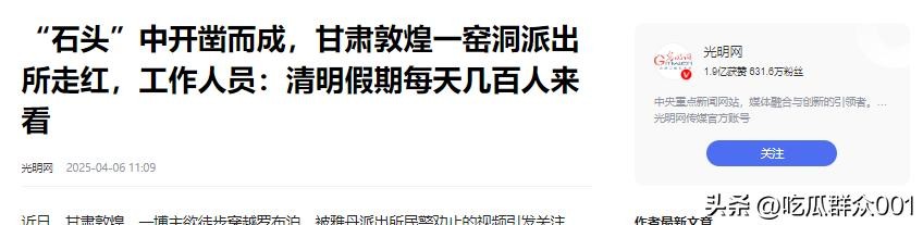 “石头”中开凿而成,甘肃敦煌一窑洞派出所走红,工作人员:清明假期每天几百人来看光明网2025-04-06