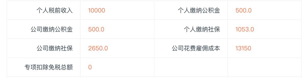 假设期望税前工资为10000RMB,其他条件相同,那么他的社保、公积金缴纳情况,以及个人税前年收入为12万,税后年收入不足10万。