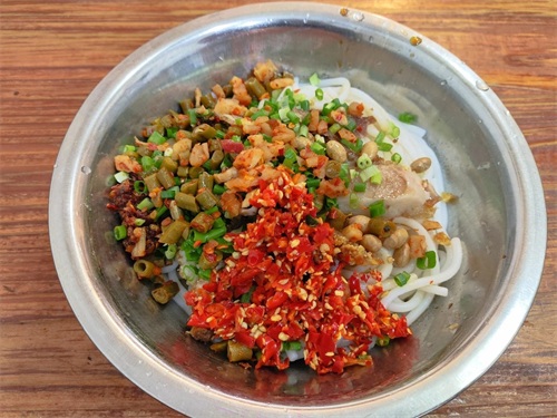 桂林米粉(市区“老东江米粉”):卤水香浓,加锅烧肉脆而不腻,5元一碗吃到饱。