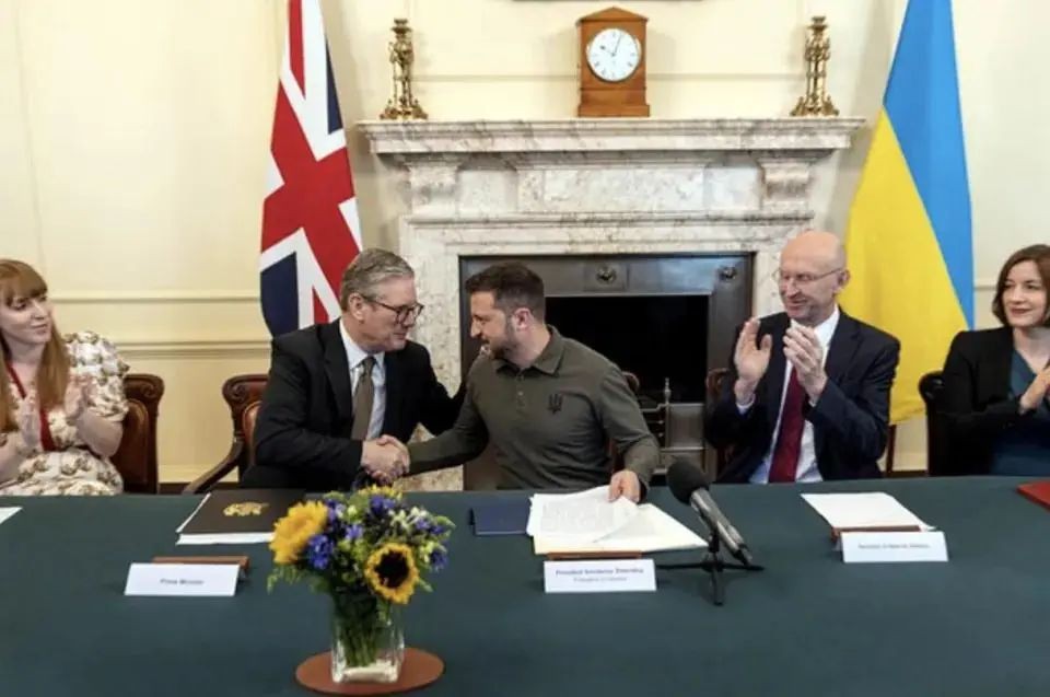 第一件事:与乌克兰签署“百年伙伴关系协议”。1月16日,英国首相斯塔默突访乌克兰,与泽连斯基签署了“英乌百年伙伴关系协议”,承诺全力支持乌克兰一百年不动摇。此举彰显了英国在俄乌冲突中的坚定立场,并试图通过英欧合作确保对乌支持,遏制俄罗斯扩张,重新定义英国在全球治理中的角色。