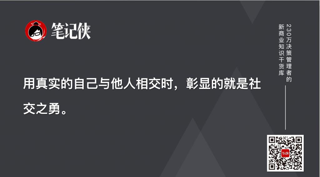 其实,社交之勇能让人身心完整的立于他人面前,也为他人创造了敢于将自己立出来的安全感,这时,人在工作中也会有真正的投入和创作。