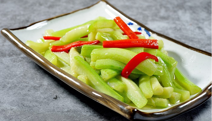 3.热锅凉油爆香蒜末,线瓜放入翻炒。