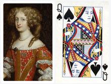 黑桃Q上的人物是埃利诺,她是一个四张皇后牌中唯一一个持有武器的,是神圣罗马帝国皇帝奥波德一世的皇后。