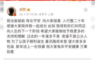 2023 年 1 月 31 日,胡歌自爆当爹!" 隐婚 "" 隐育 " 引起全网震惊。