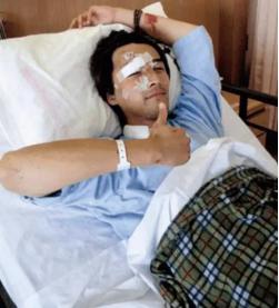 4 天内,2 次全麻手术,脸上动了十几次刀,缝合了 100 多针,脸上留下一条明显的疤痕。