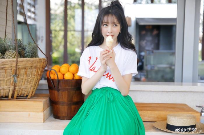 沈梦辰是什么样风格的衣服都能驾驭的了,这次她穿了一件白色的短袖,搭配了一条绿色的半身裙,看上去十分的清新,少女感十足,绿色本就非常适合夏天,所以说这样的穿搭再适合不过夏天穿搭了~90后的小姐姐们可以借鉴一下哦~分分钟迷倒你的男神,而且会成为夏天一道靓丽的风景哦~你们喜欢沈梦辰的穿搭吗?你们给她的穿搭打多少分呢?