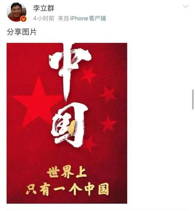 或许是意识到事情的严重性,李立群于 8 月 9 日晚间再度发文,并配上“只有一个中国”的图片表明立场。