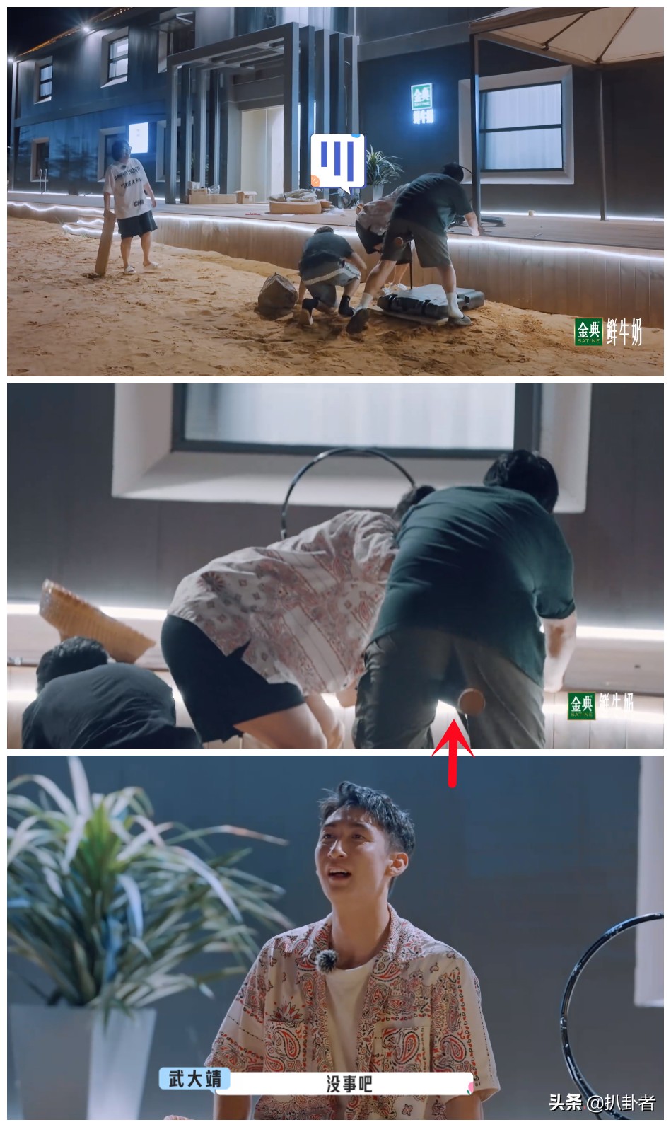 提一点有趣的情节,节目中王传君跟武大靖一起给王鹤棣组装篮球框,不料杆子歪倒意外直接“顶裆”。