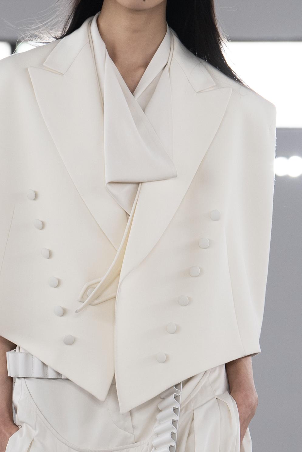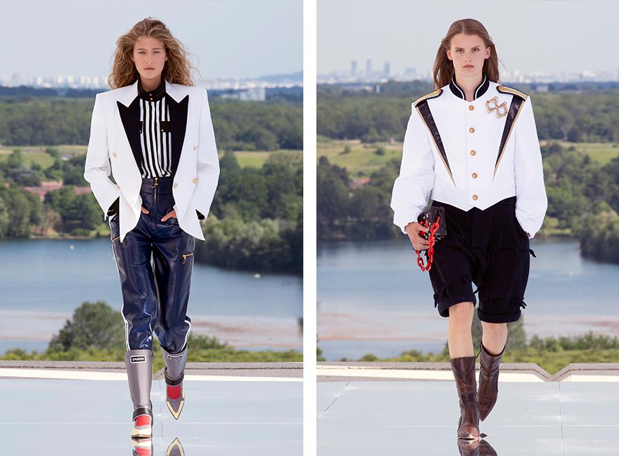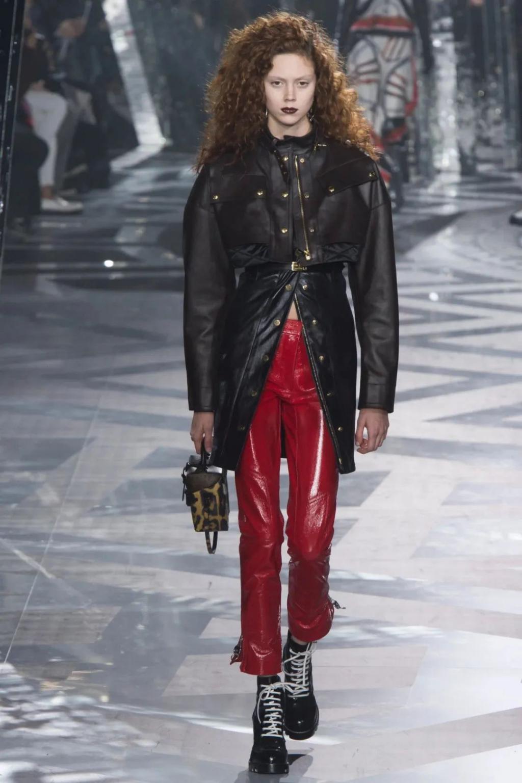 还有宽肩短夹克+哈伦裤的经典组合。坚硬锋利的线条,让人联想起亚马逊战士的战甲,而考究的细节,又体现出只有LV这样的老牌时装屋才能熟练运用的工艺。