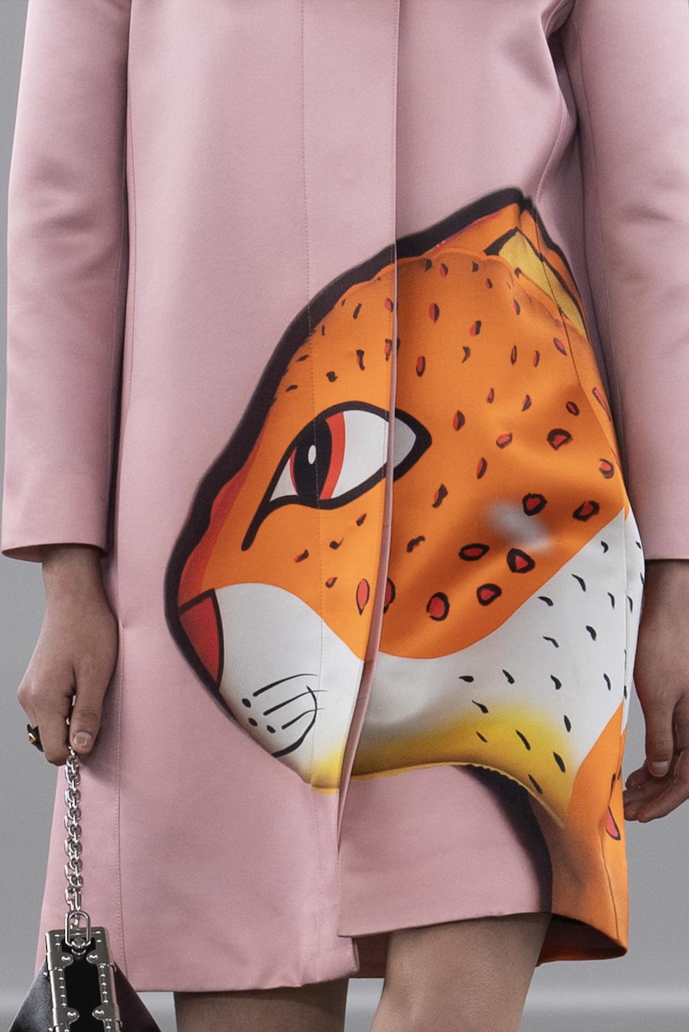 整场大秀开场的前七个look也全都印有孙一钿画的小动物,小豹子小狗小斑马满场跑。俏皮天真的图案配上Nicolas Ghesquière标志性的廓形,活泼又高级。