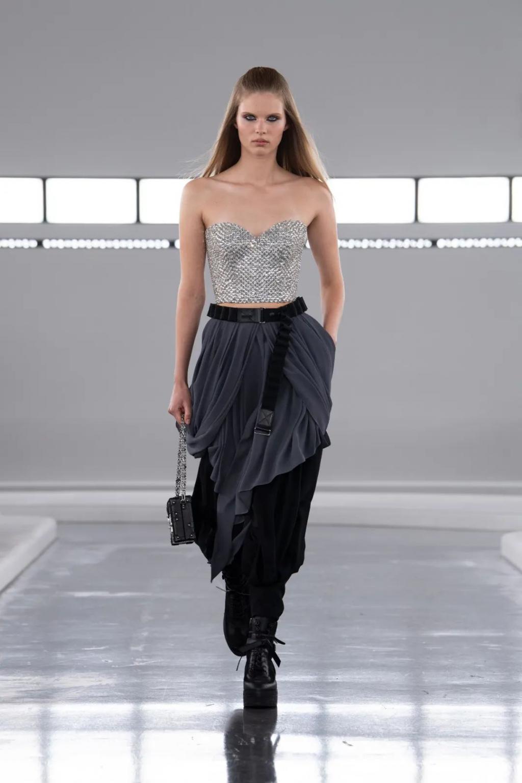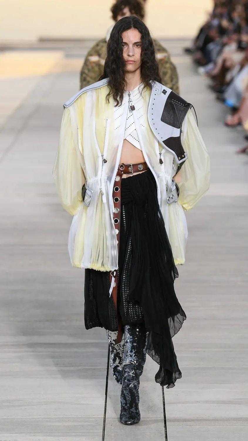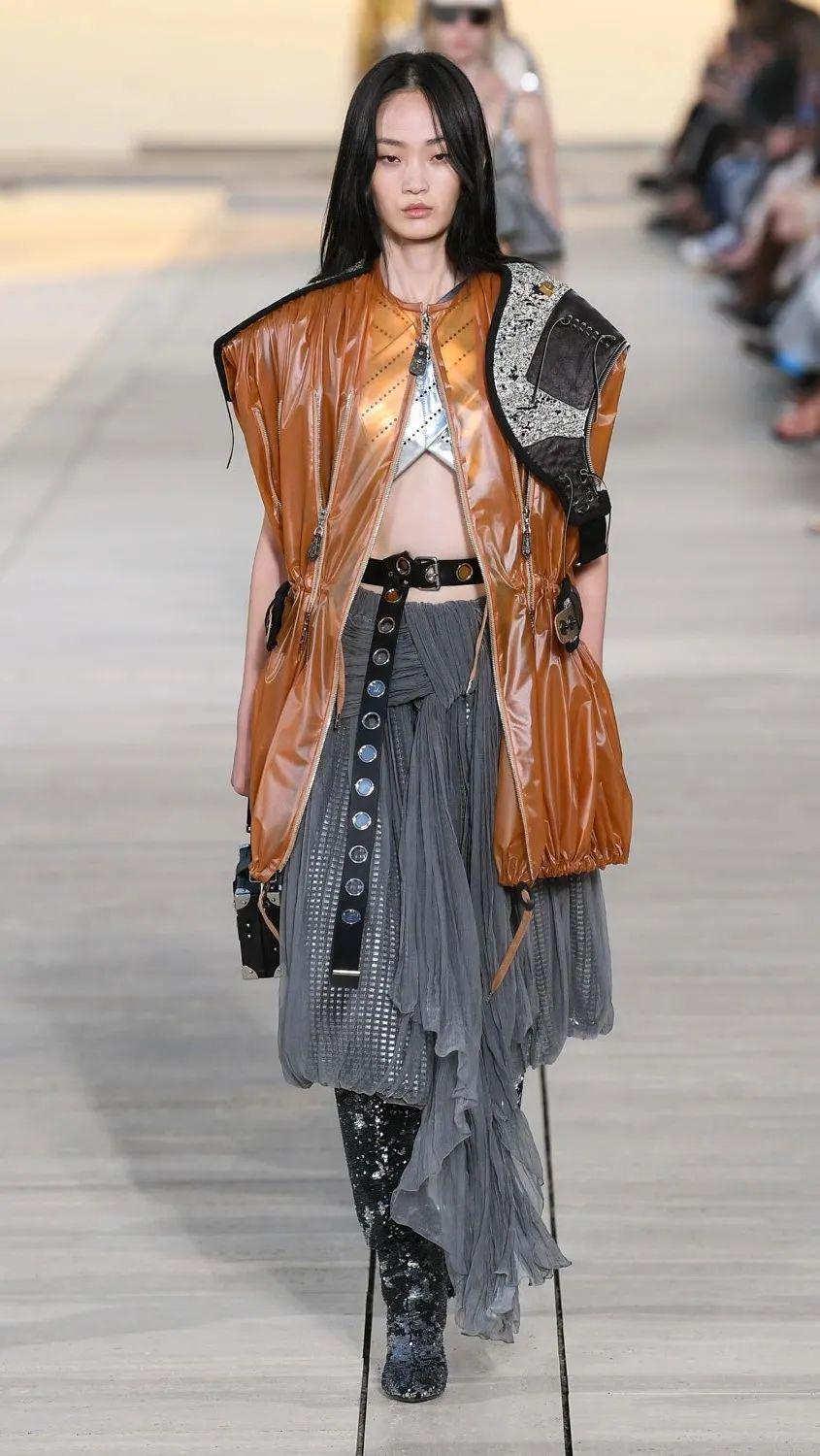 LV 24早秋秀上随处可见这种脑洞很大的造型。上半身夜店辣妹,下半身吟游诗人。