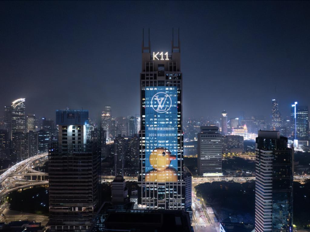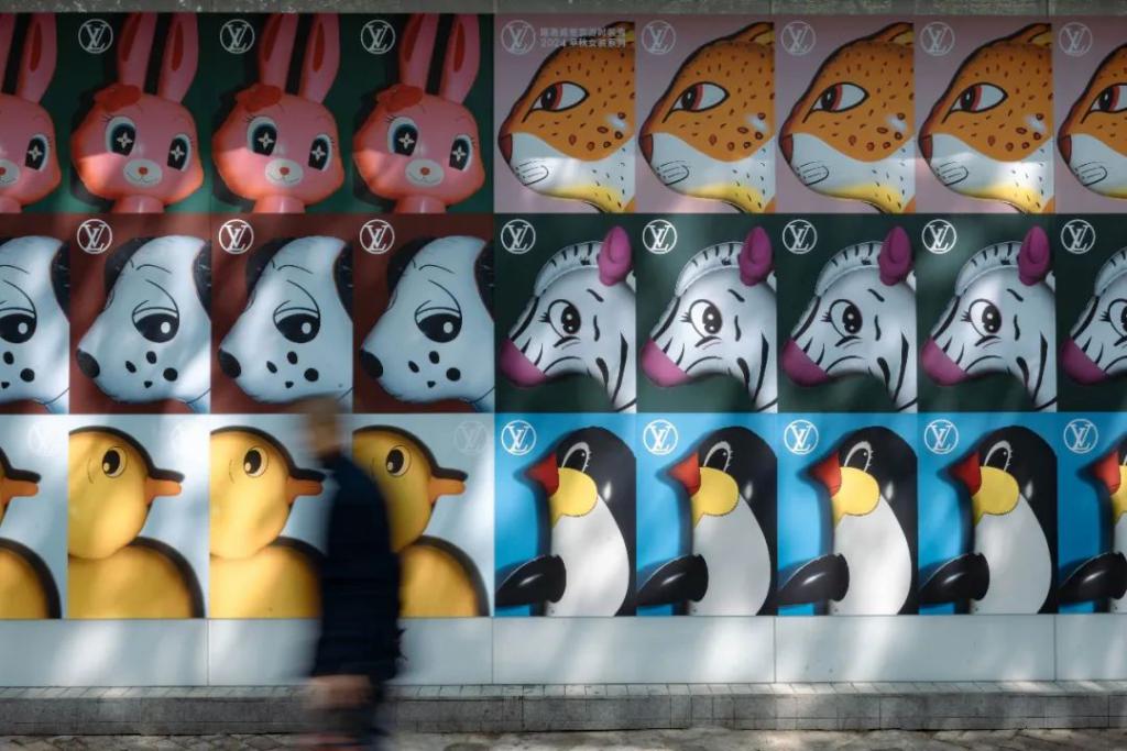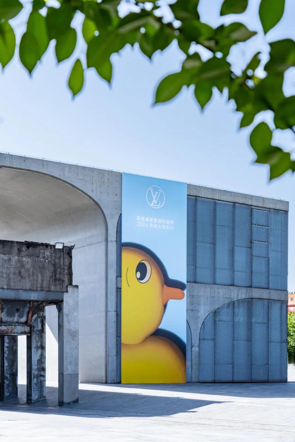 我印象里这是LV第一次给中国艺术家这种级别的牌面。秀前就开始铺垫,巨大的小黄鸭海报都能俯瞰上海。