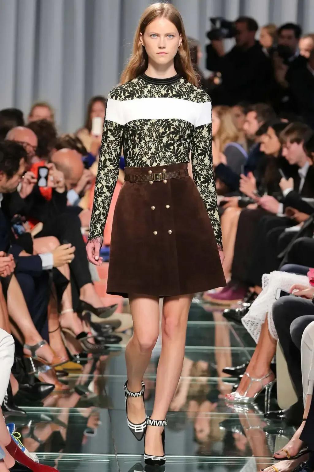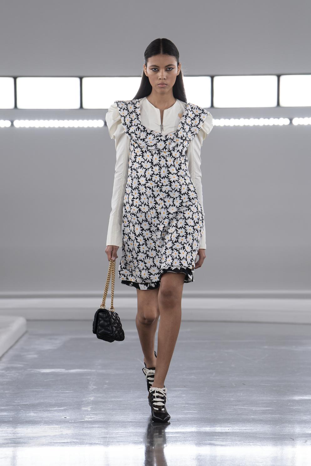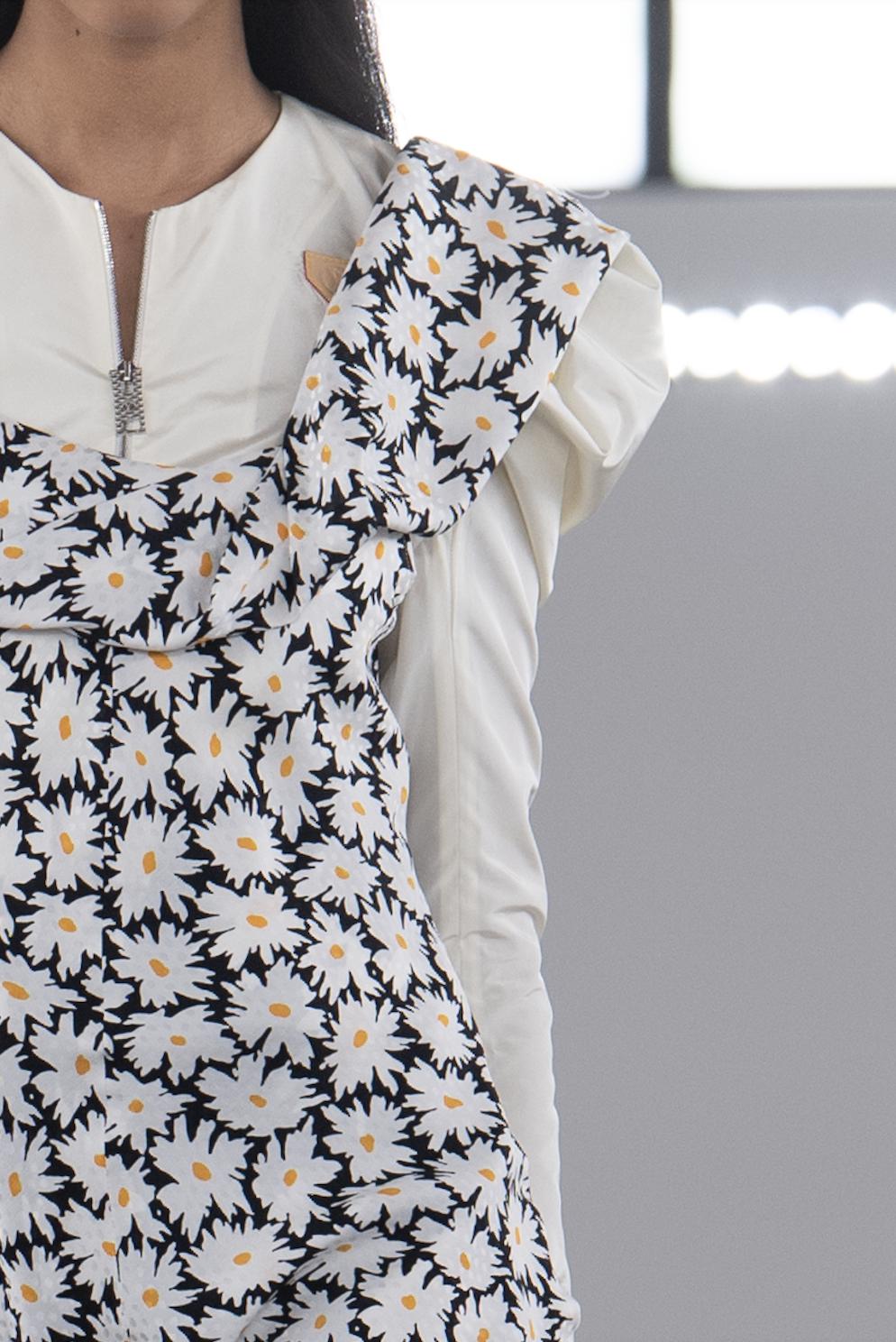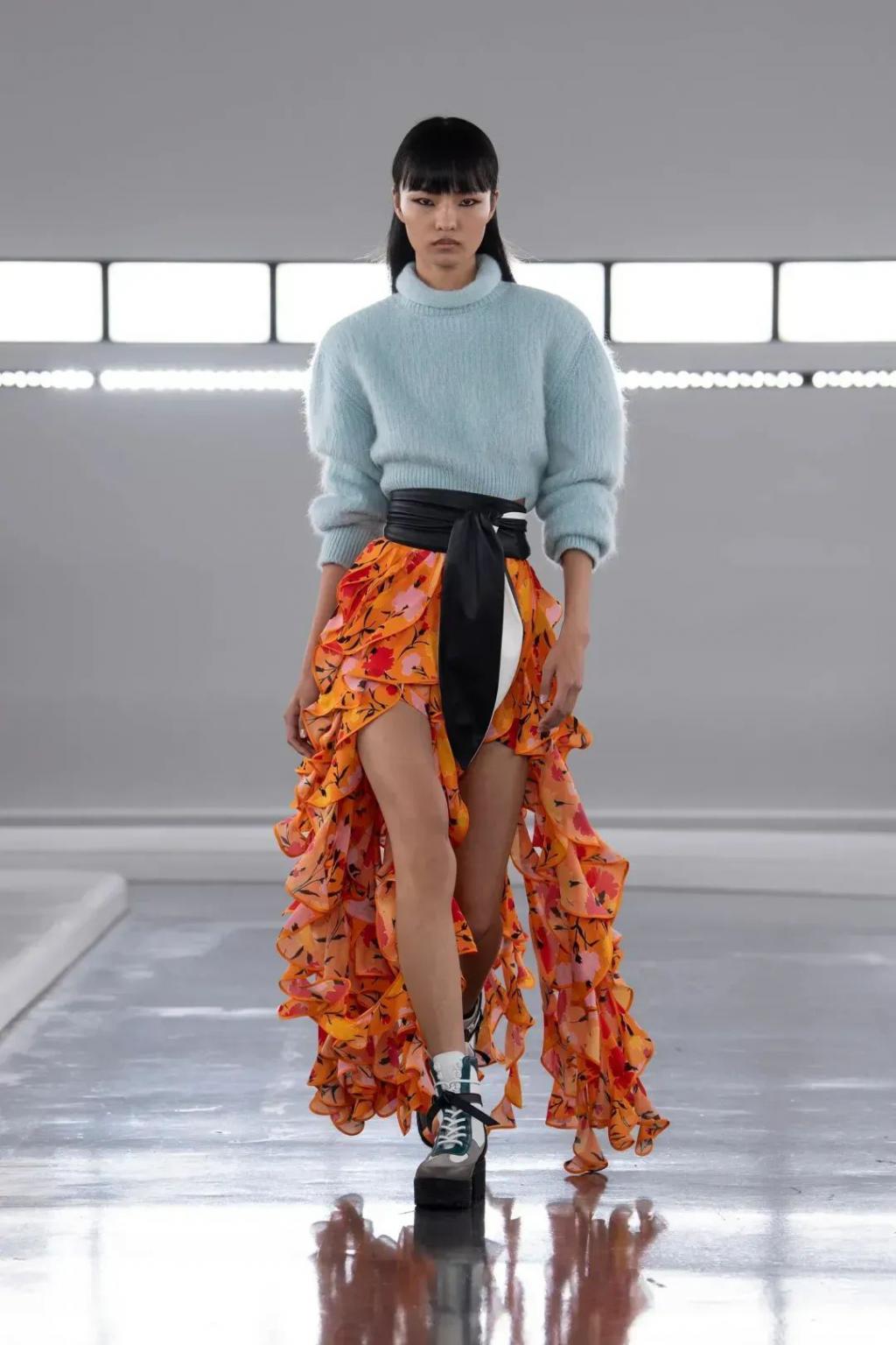 像花边褶饰这样传统的女性化元素,在Nicolas的调度之下也能完全不落俗套。模特走动起来的时候,这些花边弹跳摆动,非常俏皮灵动。