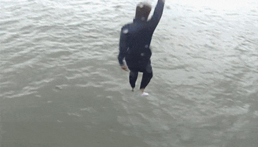 警察为了捉贼,说跳河就跳河。