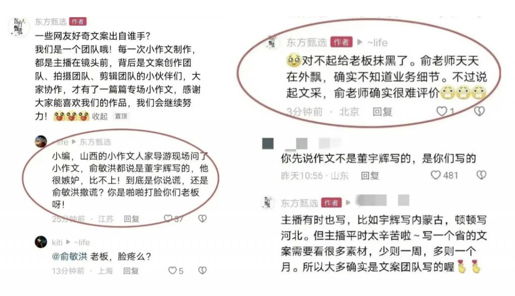 有网友在评论区追问," 俞敏洪都说是董宇辉写的 ",你和你们老板谁在说谎?