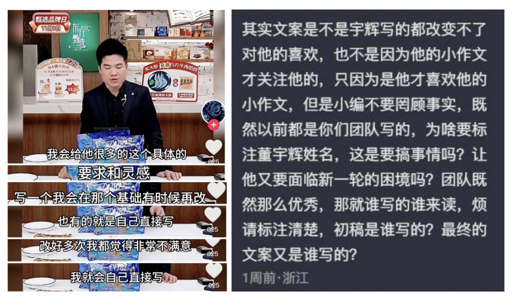 董宇辉也在 9 号的直播中短暂回应,说"自以为很懂业务的小编胡回复 ",似乎是想和稀泥圆个场,结果起了反效果," 本来就憋屈 " 的小编这回彻底 " 不能忍 " 了,再次留言,列举数篇原创文案写作过程,有文案团队独立创作,有主播合作创作,也有主播自己写的。