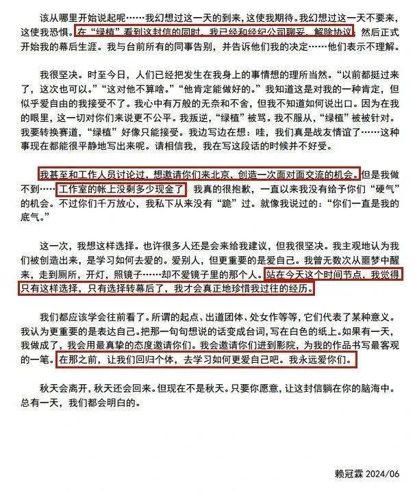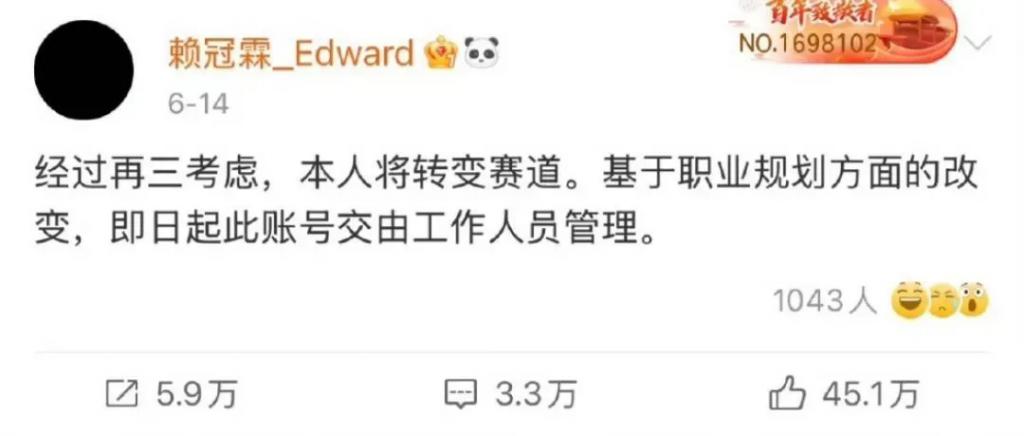 赖冠霖能做到真的说退圈就退圈,放下过去的一切,已经赢了很多了。