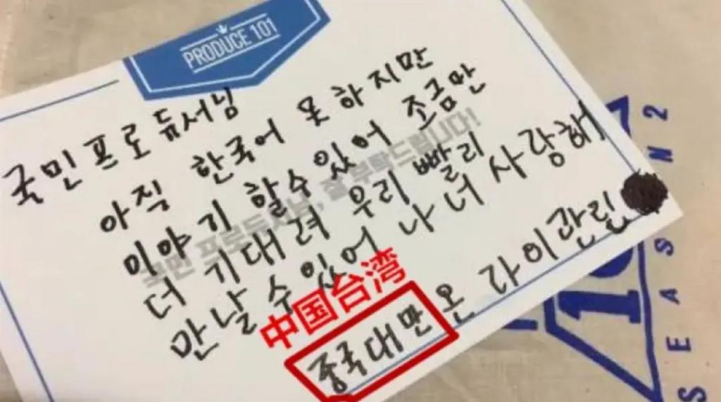 无论是参加节目时用韩语写下"中国台湾"四个大字