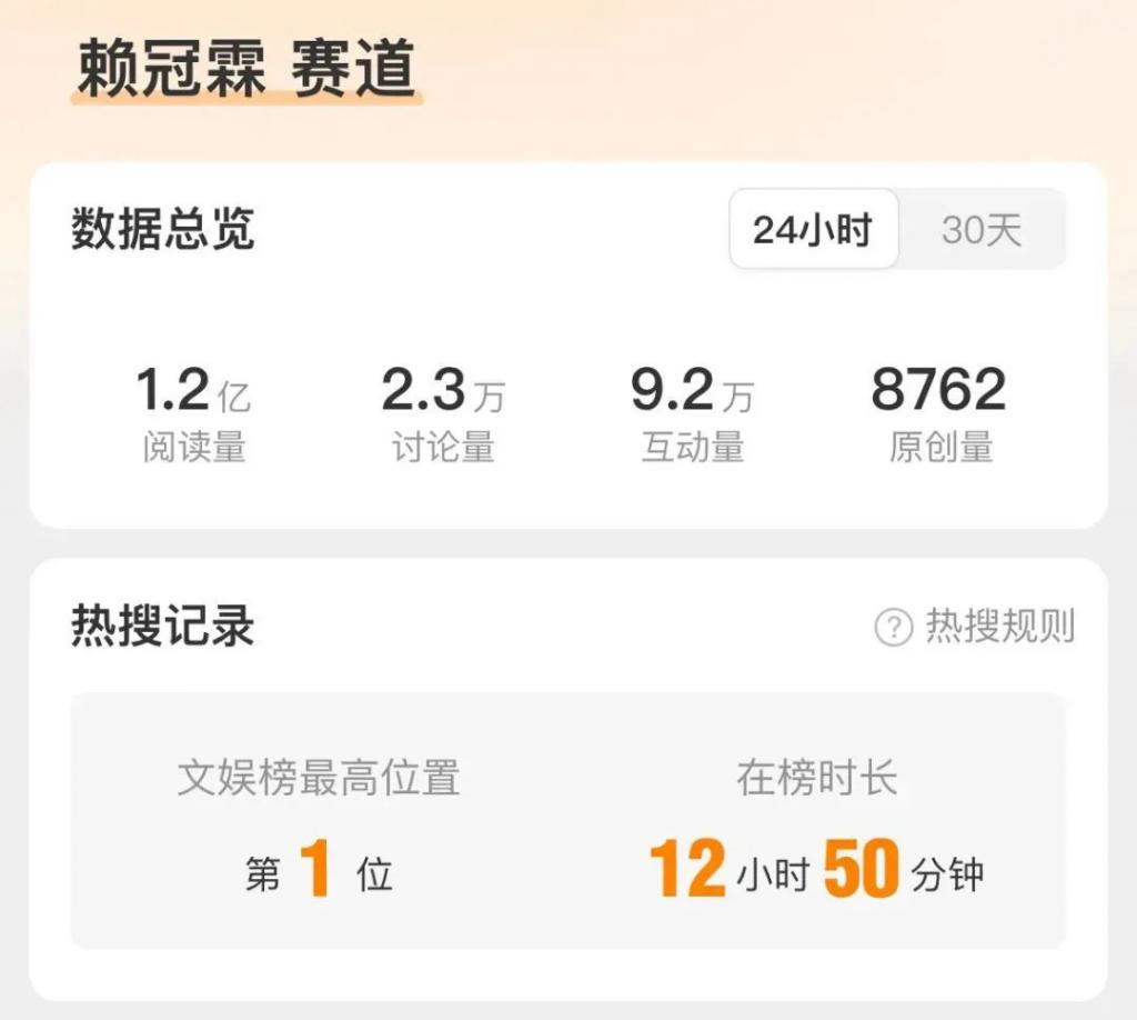 #赖冠霖 赛道#话题一出,一小时内迅速登顶,