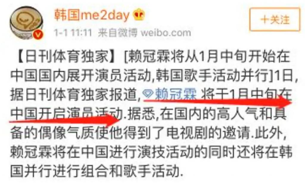 要在中国开启演员活动,同时还将在韩国并行进行组合和歌手活动。