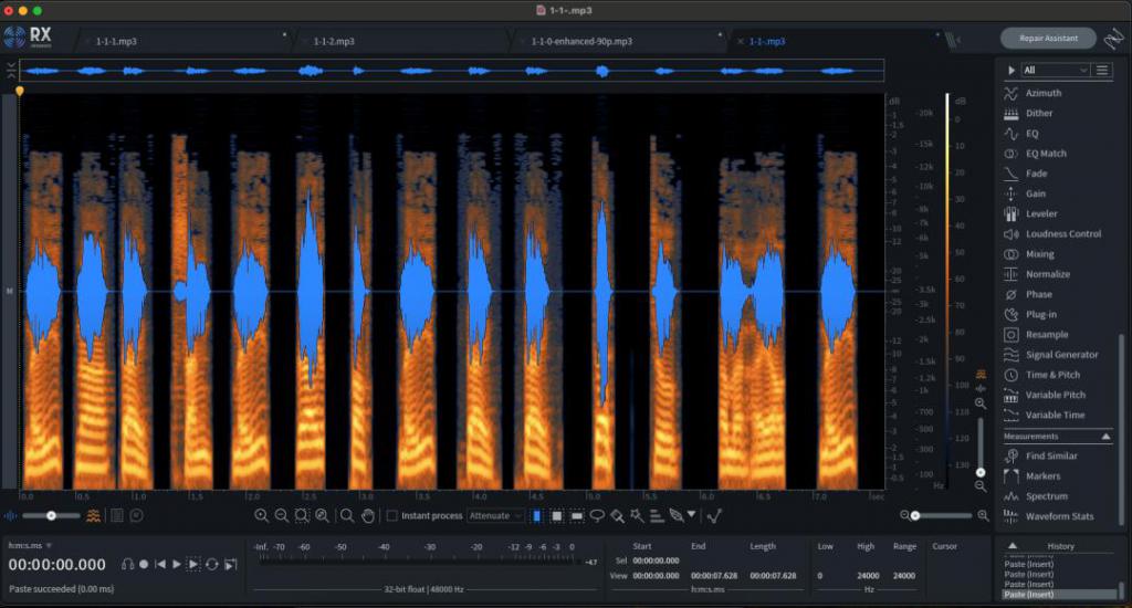 我们从来没有做过这种准备,去特意收集女儿的声纹数据。经过一系列寻找,判断,最终在一个我女儿有一次去上课途中介绍地理环境,从户外走到图书馆时的视频里找到了可以用的三句英文。那个视频里,虽然风很大,但相比其他资料还是好一点的。