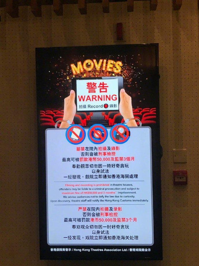 要知道在香港影院拍摄、录影行为最高可被罚款5万港币及监禁3个月;在台湾最高可处5年有期徒刑、罚款2万新台币。