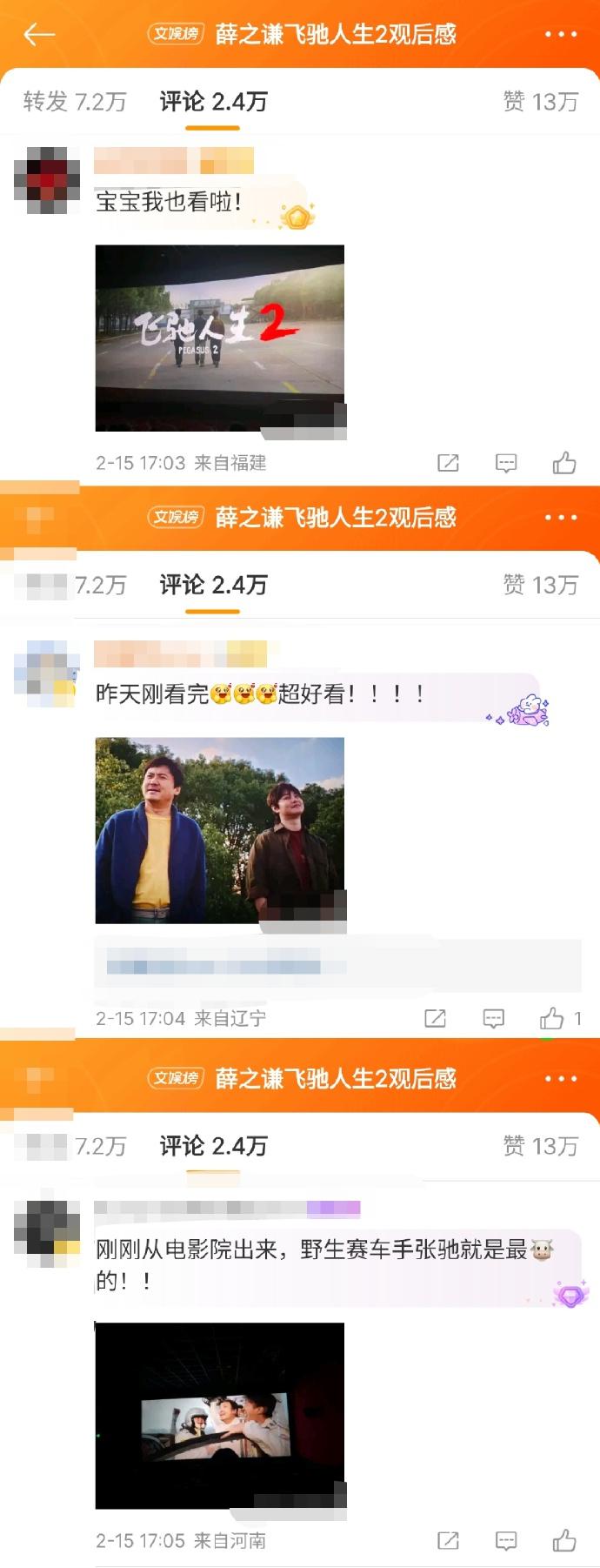 他的微博底下全是《飞驰人生2》之观众剪辑版。