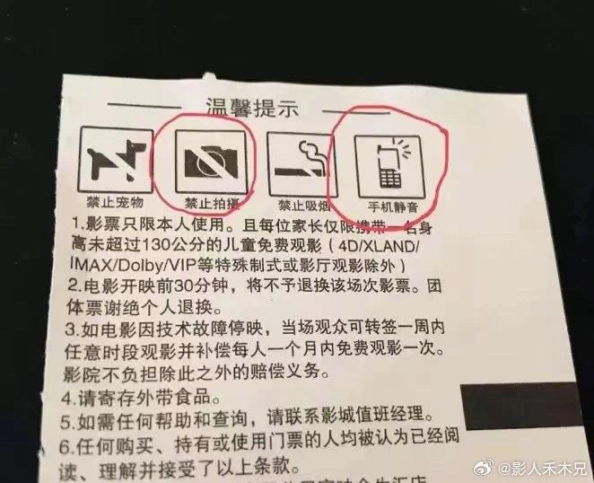 翻出电影票,每一张背面都标注了禁止拍照录像的标识。