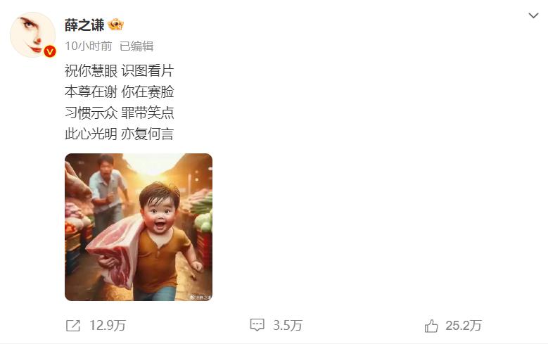 这下舆论场搅浑了,薛之谦再次转发,并且说了一段语序不通的阴阳话。