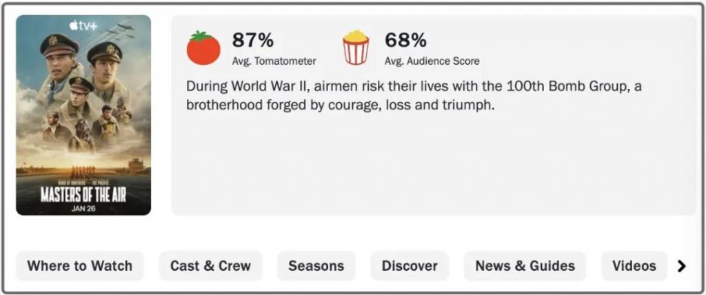 斯皮尔伯格搭档汉克斯,这回"二战三部曲"收官之作,开局五集下来,风头正劲。