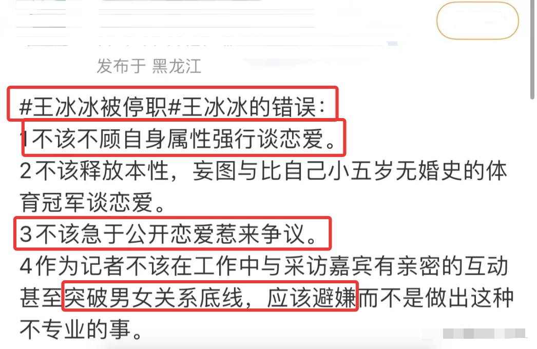 不管事情的真相如何,作为有着大好前途的央视女记者,王冰冰被卷入这场恋爱闹剧中,确实有些意外。而如果王冰冰真的是无辜的,是被渣男欺骗,那更是巨大的损失。不过是谈个恋爱,却因此影响到自己的职业前途,真的是有些得不偿失。